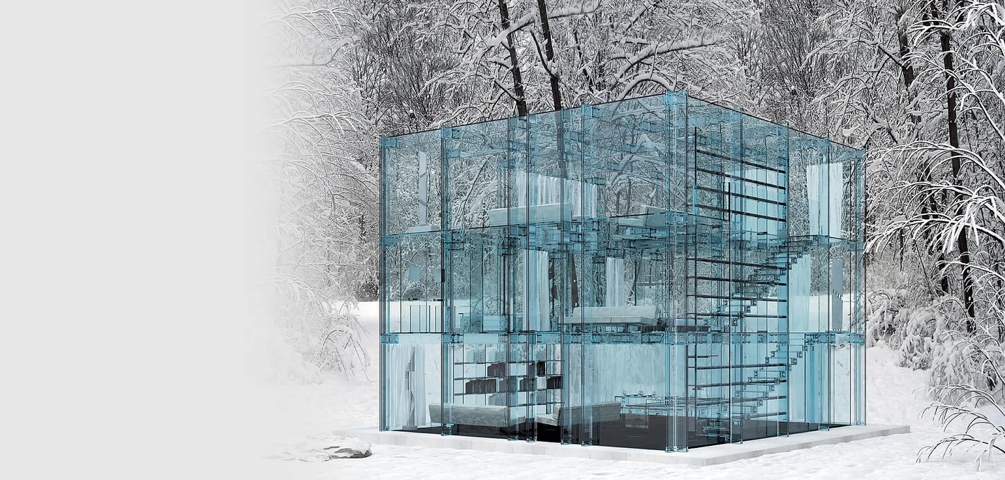 Simplicity is when, in the act of creating the dwelling, matter becomes transparent, a medium for aesthetic values, the stage and theater of representation. Carlo Santambrogio and Ennio Arosio pursue and achieve their design intention in which glass figures as the unquestioned protagonist, excluding the mediation of supports that would challenge its leading role. “That image is symbolic,” they comment. “We’re portrayed standing on a transparent sheet of glass. So often, at least virtually, the boundary line vanishes, and we receive the impression of an unbroken vision.