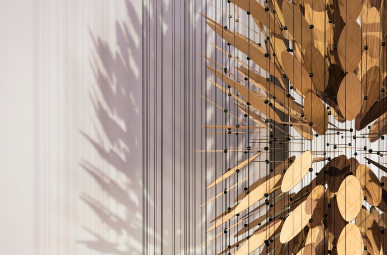 Awaken, a 4-meter suspended sculpture, evokes liberation and calm. Its fractal surfaces play with light and shadow, inspiring energy and serenity in equal measure.