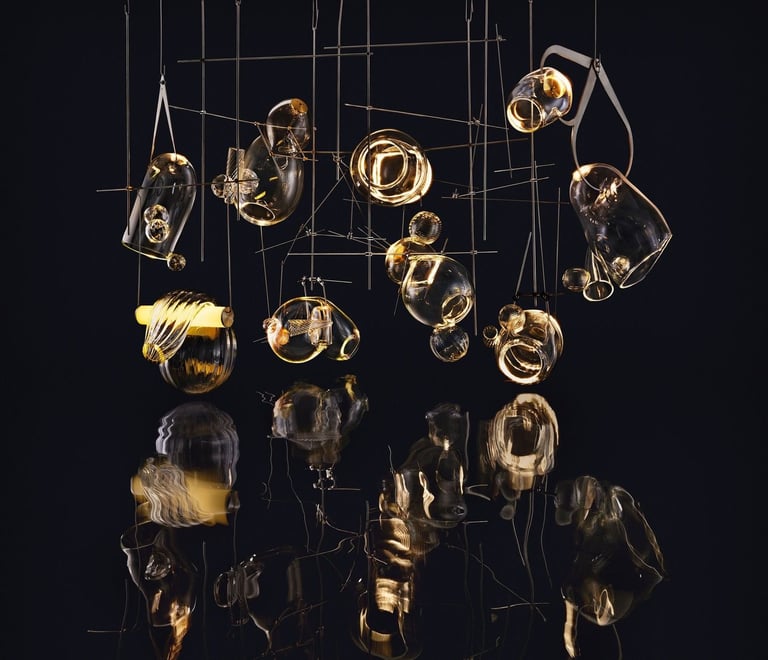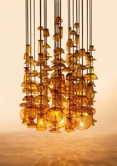 Curoq and Stuart Haygarth unite in a vision where recycled materials transform into sculptural lighting. Each bespoke piece channels Haygarth’s talent for reimagining discarded objects, creating installations that bring artful light and sustainable beauty to refined spaces. Together, we celebrate the elegance of repurposed design.