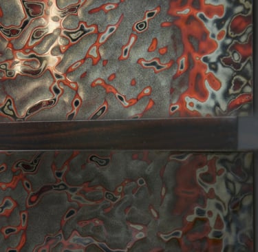YOROI × YUKASUMI is a study in refined contrast—where sculptural reliefs emerge from flat surfaces, and the interplay of deep red and charcoal black creates a tonal balance that feels both deliberate and instinctive. Inspired by the quiet discipline of Japanese Zen, this surface invites stillness, depth, and shadow into architectural space