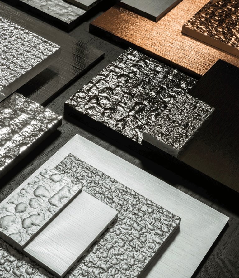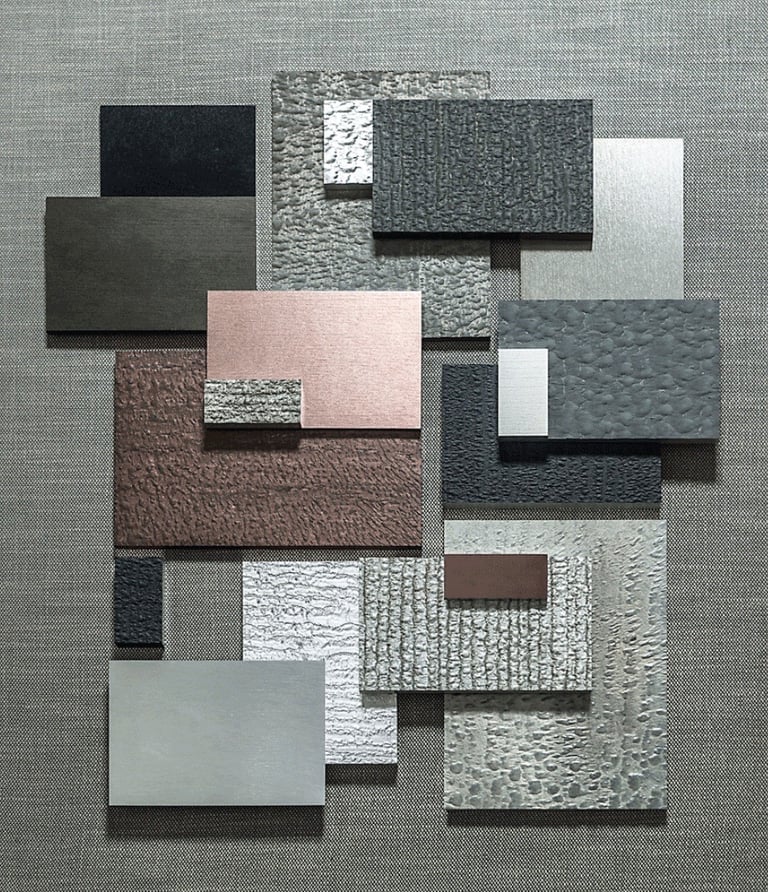 The Native collection by Hadi Teherani captures the essence of raw aluminum in primal, textured finishes—Saturn, Neptune, and Pluto. With unrefined cast surfaces and options like matte, brushed, or anodized, Native brings a natural, archaic beauty to interiors and facades in tones from graphite to silvery bright and rich bordeaux.