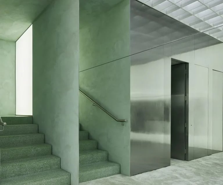 David Chipperfield’s Furla Headquarters in Milan features Matteo Brioni’s clay plasters, combining timeless design with sustainability. The natural, matte finish of the plasters adds warmth and texture, while their eco-friendly properties enhance the indoor environment. This collaboration showcases the perfect fusion of elegance and environmental consciousness, reflecting Curoq’s commitment to luxurious, sustainable materials.