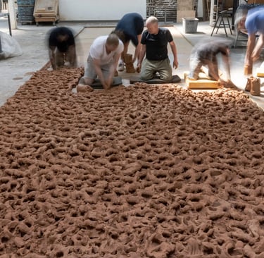 Once the clay is delivered by truck, it is smooshed and squished inside a thin steel frame that is the size of the finished piece. That alone can take a couple of days, with most of Mr. Lane’s 10 staff members involved, and music, from hardcore rap to opera, blaring in the background. Design patterns and flourishes are added throughout by Mr. Lane, using a sharpened dowel.