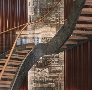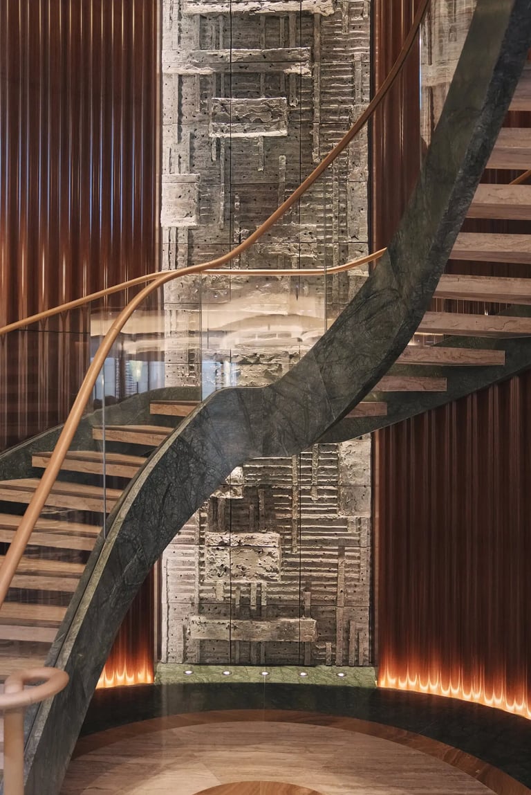 Both of his Four Seasons installations — tactile, abstract sculptures finished with an oxidized verdigris glaze, one of which stretches between two floors — are in the hotel’s Bar Antoine. They help give the space an elegance, Mr. Lane said, that feels as if it’s in “a 1930s movie that you’d come down the stairs in a tuxedo and a cigarette, but it’s much more contemporary.”